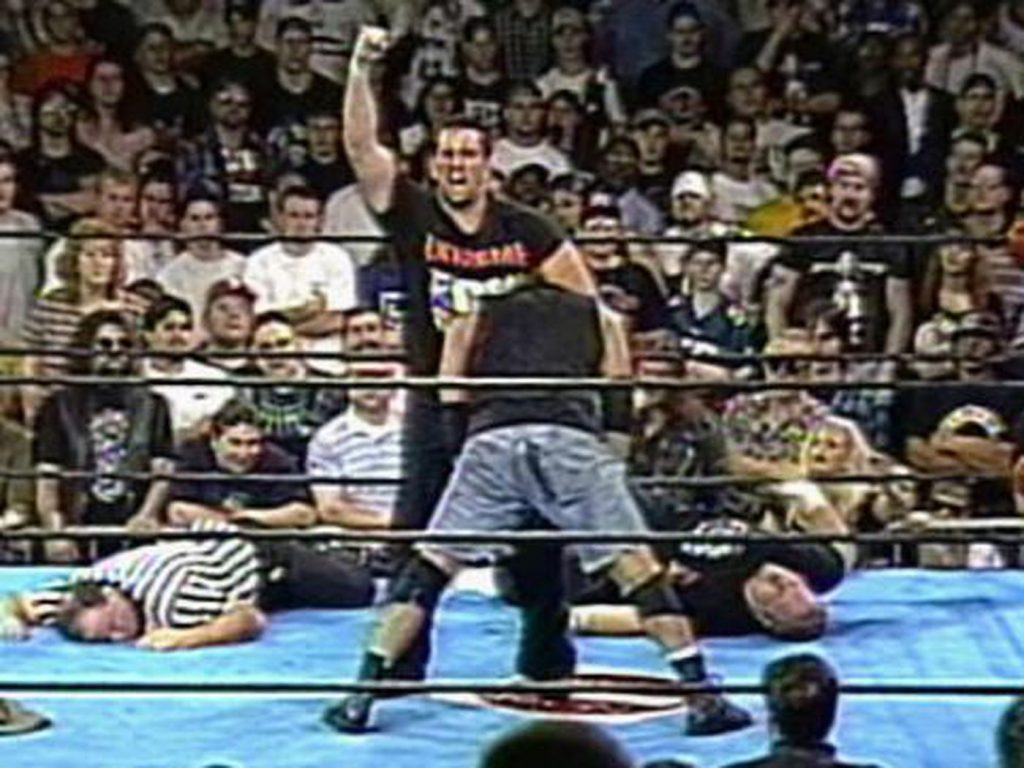 Tommy Dreamer saignait du dos et se tenait au coude à coude avec le Sandman. Joey Styles disait aux commentaires pour Tommy, “Je n’abandonne jamais. Je n’ai jamais reculé. C’est la ECW et c’est ici qu’est ma place. Et Tommy Dreamer l’a prouvé ce soir.” Après quoi, le Sandman a tiré son 11ème coup dans le dos de Tommy.